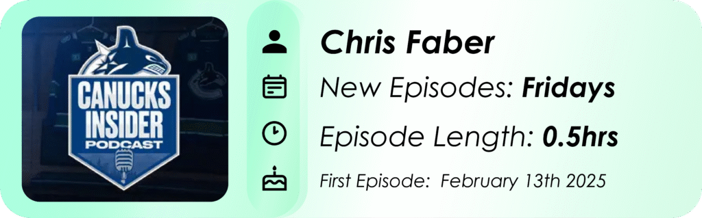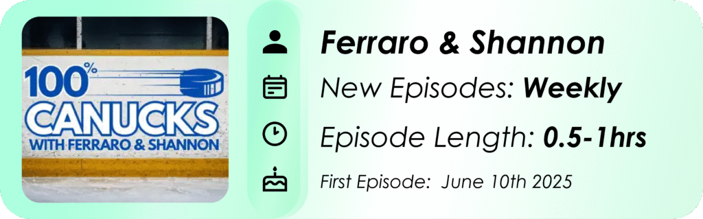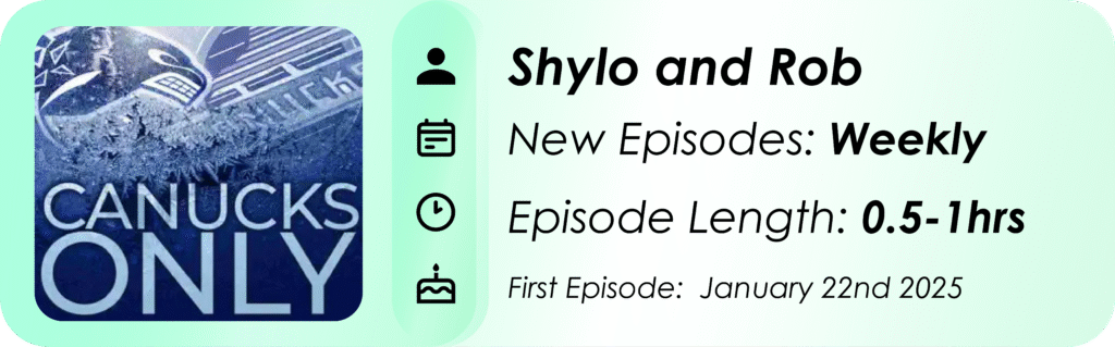 Together, Rob and Shylo deliver a podcast that feels less like hot takes and more like a conversation you’d overhear at a rink, a bar, or a late-night living room debate — informed, passionate, occasionally frustrated, and always rooted in decades of watching the Canucks try to figure it out. For listeners looking for a grounded, locally informed Canucks podcast that doesn’t talk at the fanbase but with it, Canucks Only earns its place in the city’s hockey conversation.”