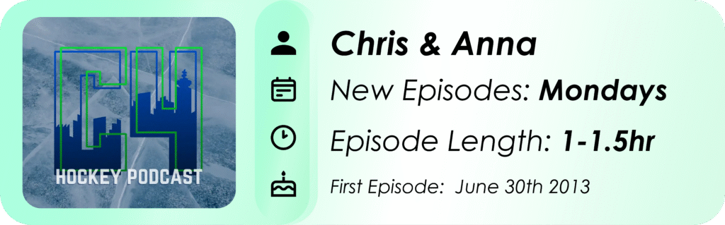 C4 Canucks Hockey Podcast – hosted by Chris Golden and Anna Forsyth – provides commentary on the Vancouver Canucks, the NHL, and pretty much anything else the two want to talk about. There are awesome guests, a few not-so-much, music, and well… anything else they can find under the seats on the Canucks bandwagon.